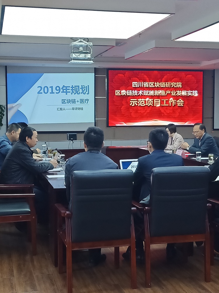 2018年11月7日 四川省區塊鏈研究院區塊鏈技術賦能新漁產業發展實踐示范項目工作會在新漁生物總部召開。