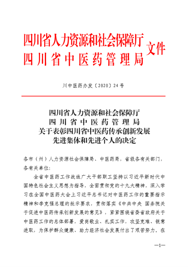 關于表彰四川省中醫藥傳承創新發展先進集體和先進個人的決定