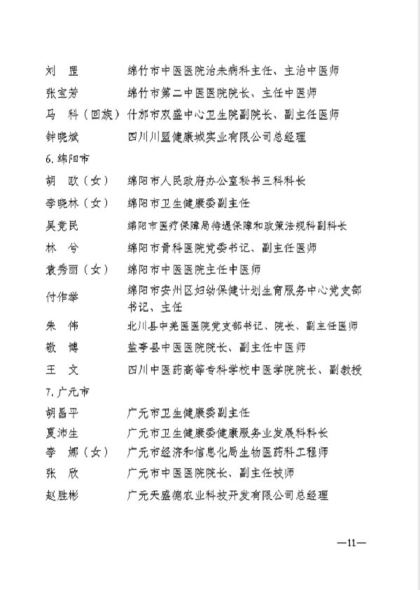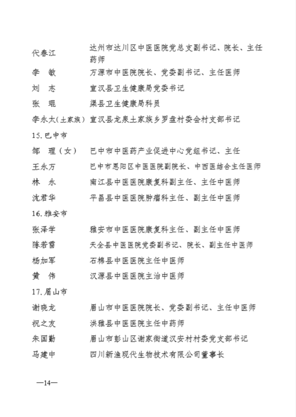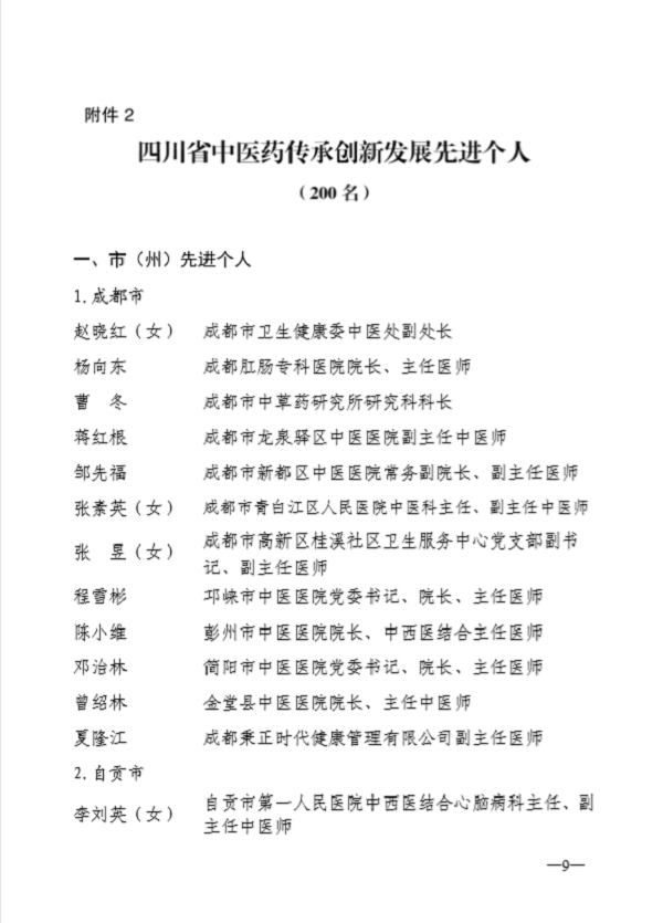 四川省中醫藥傳承創新發展先進個人部分名單: